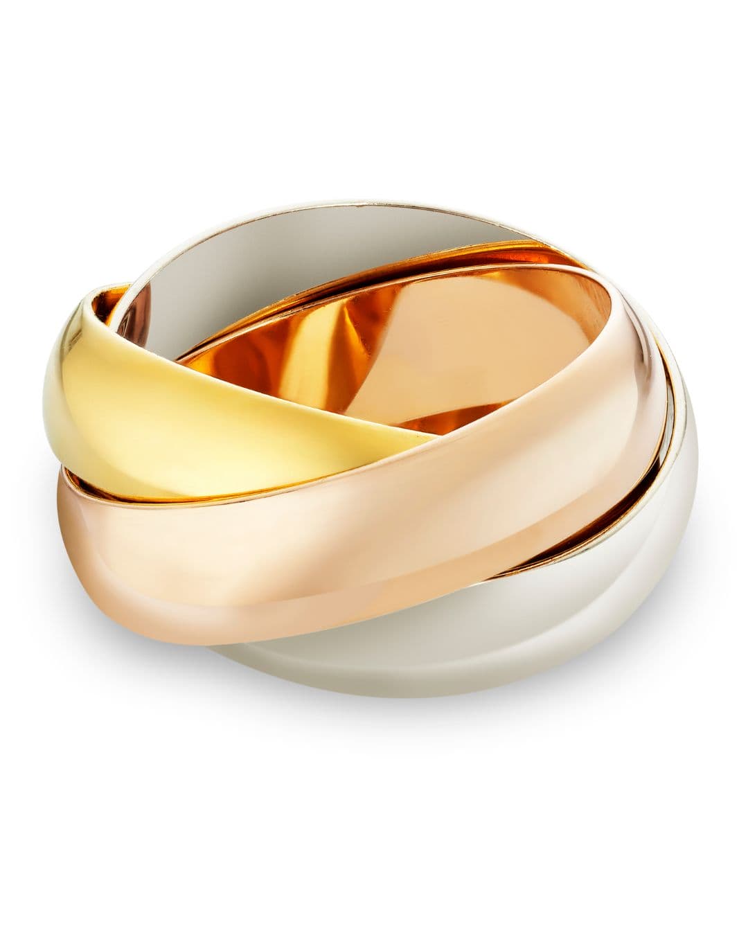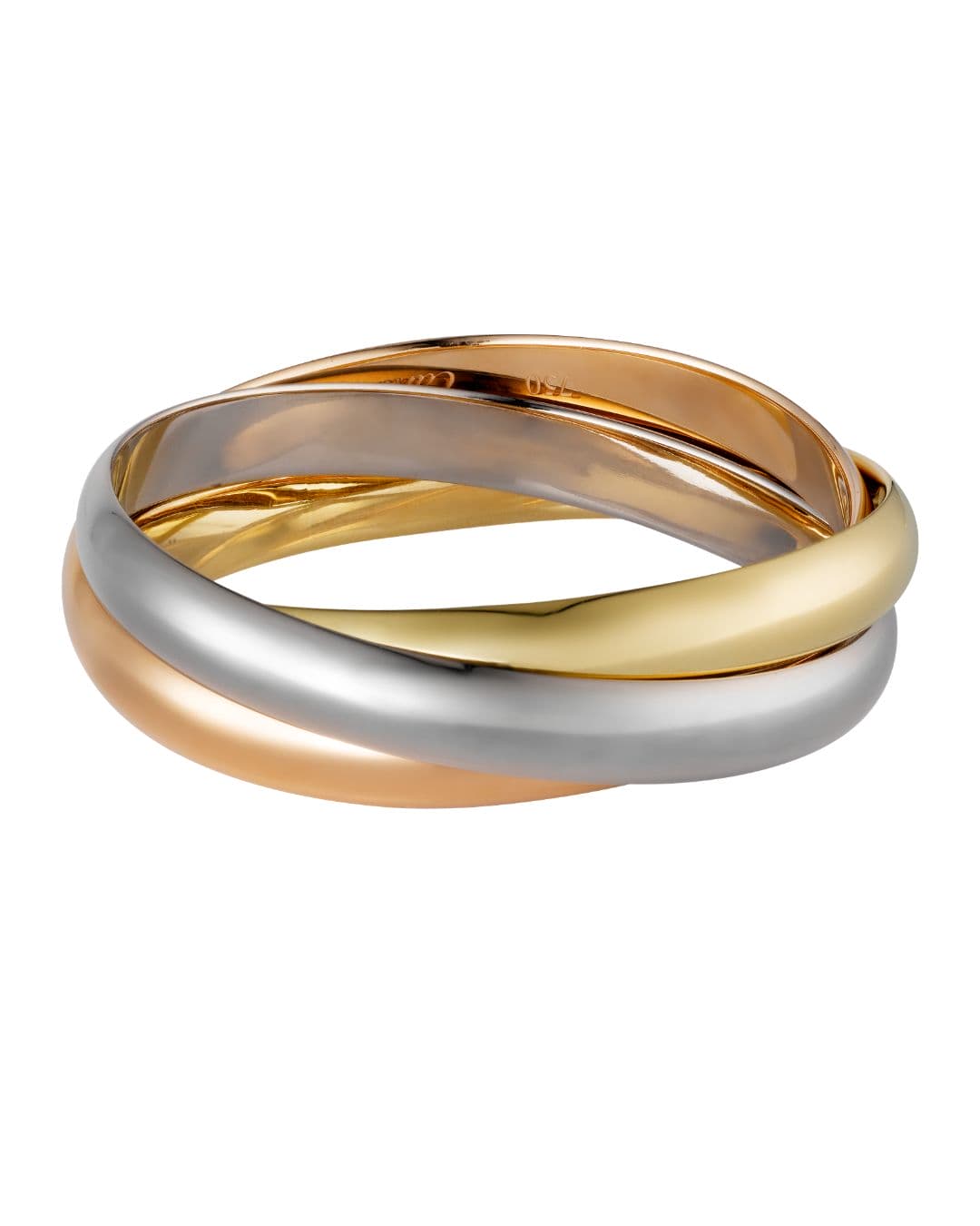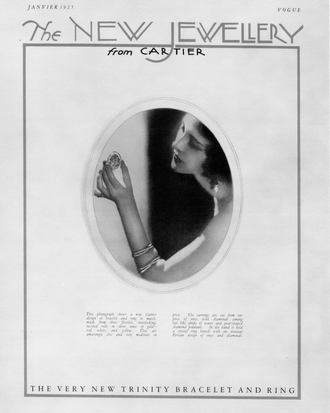 (Left) 1924: The creation of the primary ring with three intertwined bands in platinum, rose gold, and yellow gold. The identical yr, a bracelet with three intertwined bands was created.