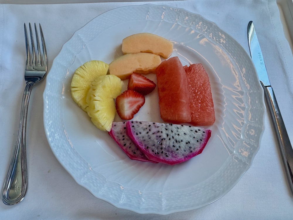 As a midflight snack, I ordered an assorted Italian cheese board served with pear mustard, dried apricot and pistachios, which tasted wonderful.