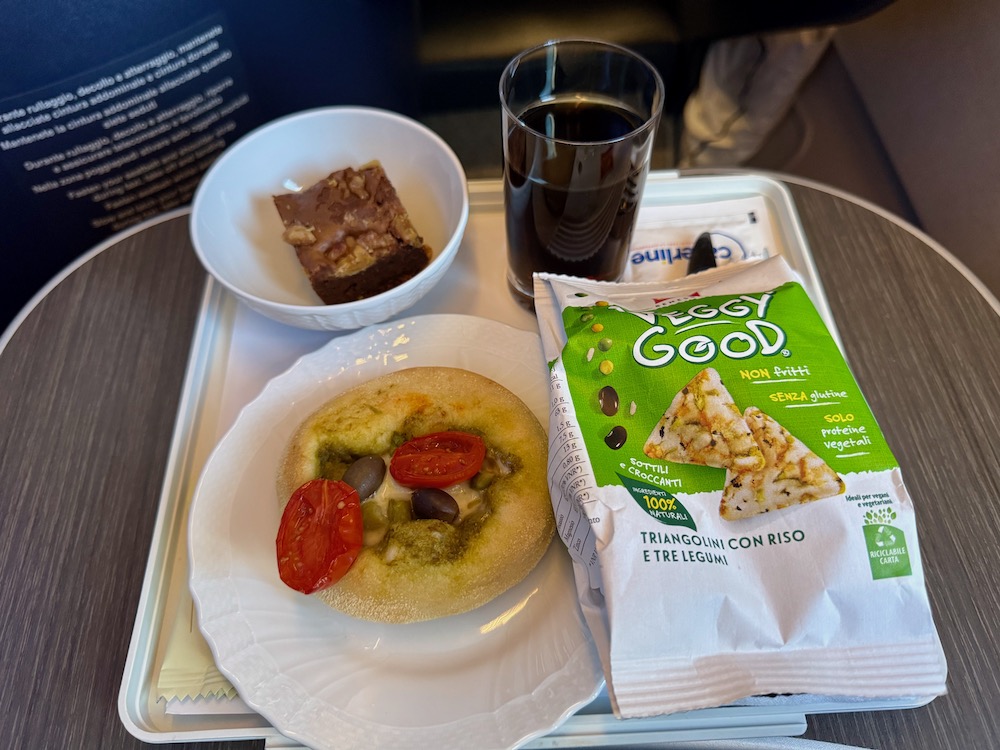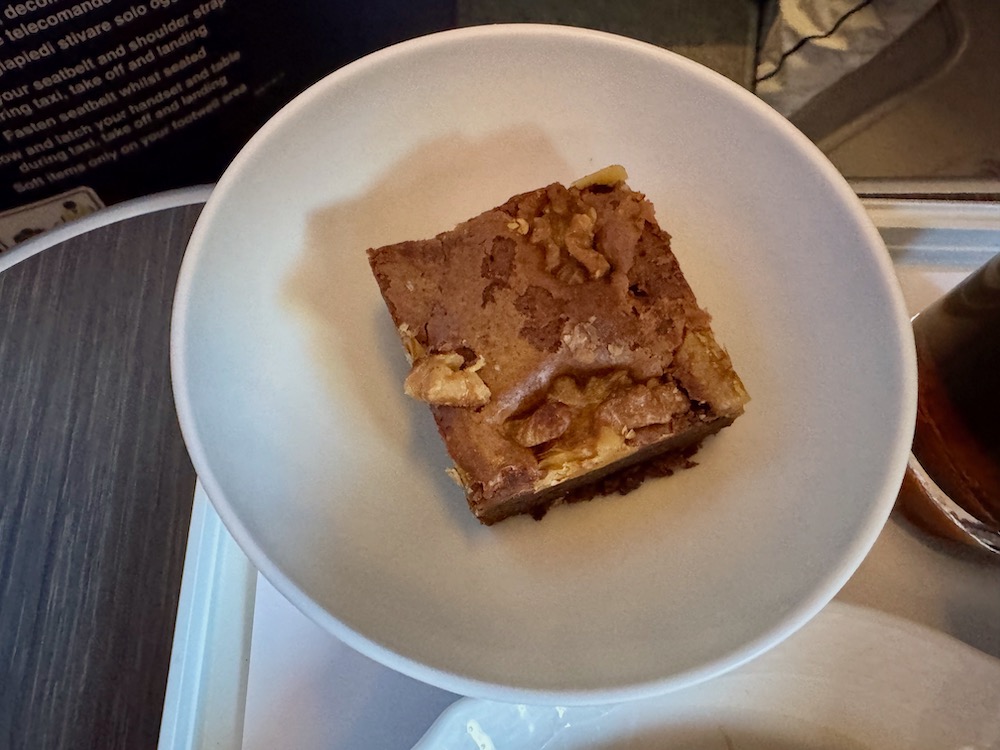 The pre-arrival dinner was easier and fewer memorable, that includes a slice of connoisseur Napolitan stone baked pizza and a walnut brownie served collectively on a single tray. Whereas ample, it didn’t fairly match the excessive normal of the lunch service.