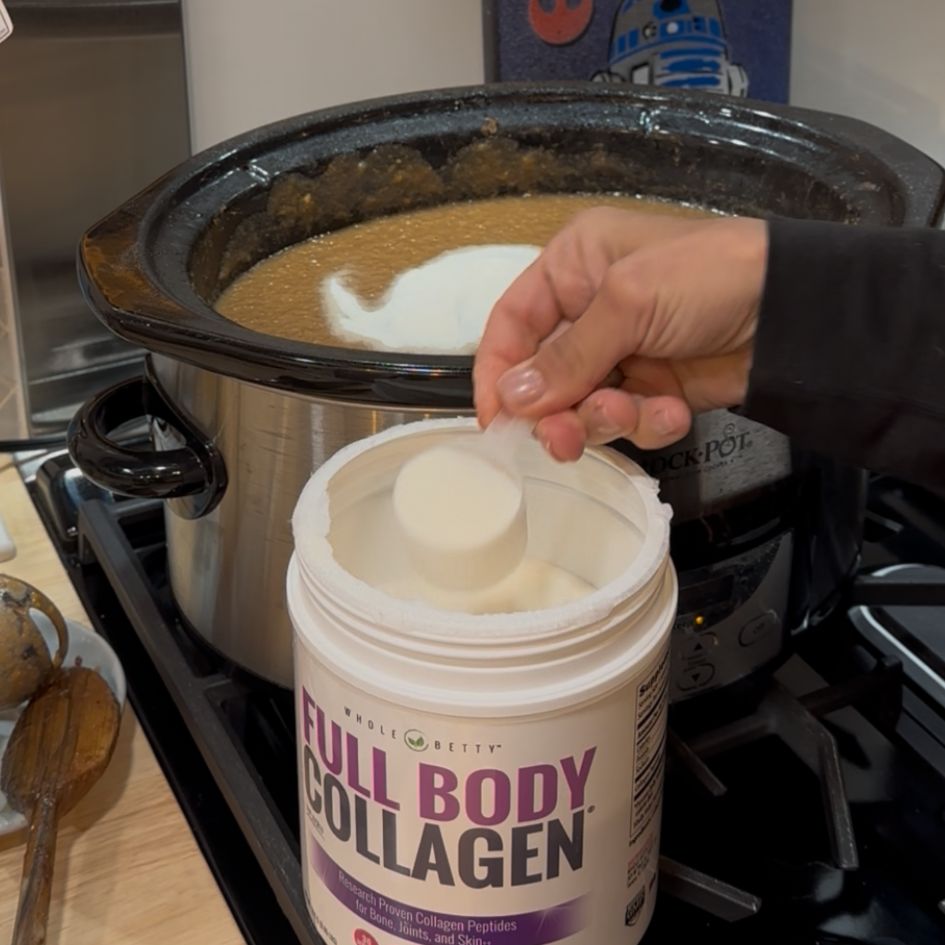 I do know it would sound odd so as to add collagen to this, but it surely’s such a terrific complement to get extra of for our bones, joints and pores and skin – and it has zero style or odor and dissolves utterly into no matter you add it to. I’m utilizing the one I make: Full Physique Collagen.