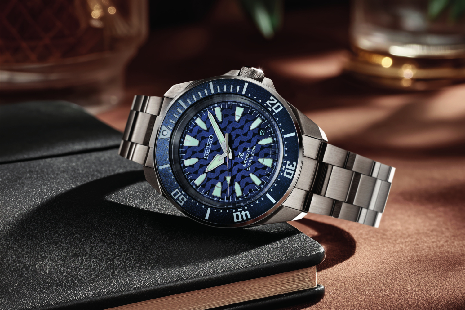 However, the choice to base this collaboration on the ever-popular Prospex line makes good sense. The watch contains a 41.7-millimetre stainless-steel case within the Samurai design, providing water-resistance to a depth of 200 metres. Its spotlight lies within the blue dial adorned with PDM’s signature Stride Sample, a geometrical motif of triangles and squares that symbolises rhythmic, steady motion. The unidirectional rotating bezel for diving, fitted with a blue stainless-steel insert, enhances the dial superbly.