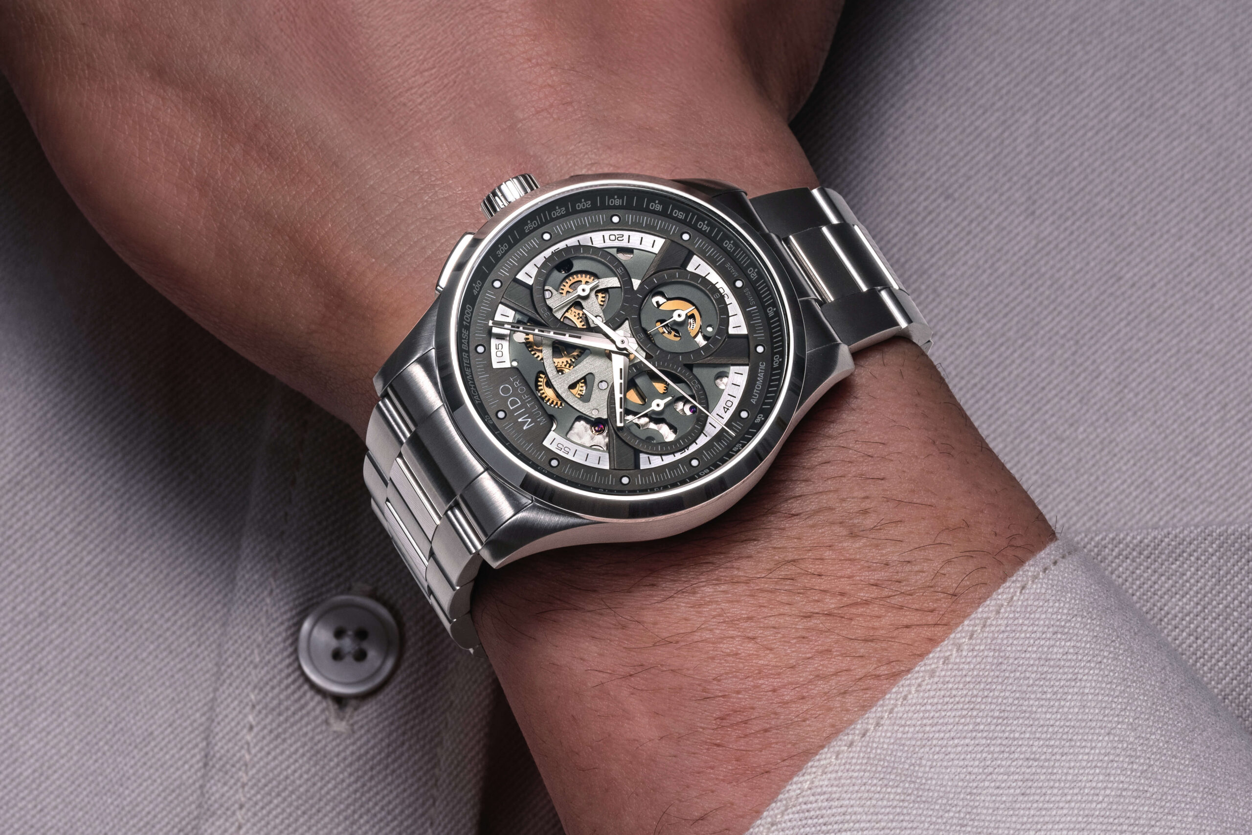 Mido Multifort Skeleton 38.5mm in chrome steel Chronograph